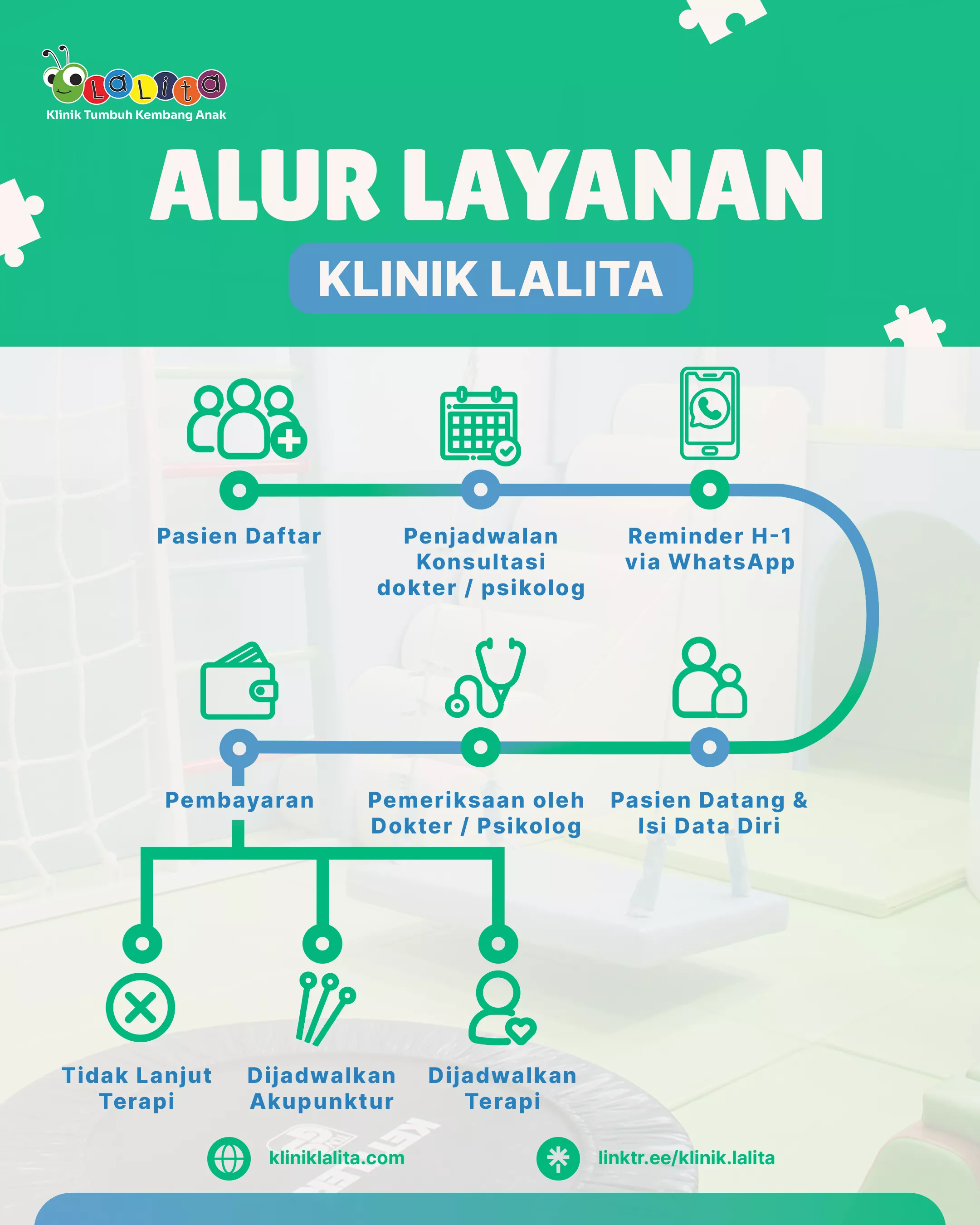 Klinik Lalita memberikan pelayanan yang berfokus pada tumbuh kembang anak mulai dari skrining oleh dokter spesialis hingga terapi